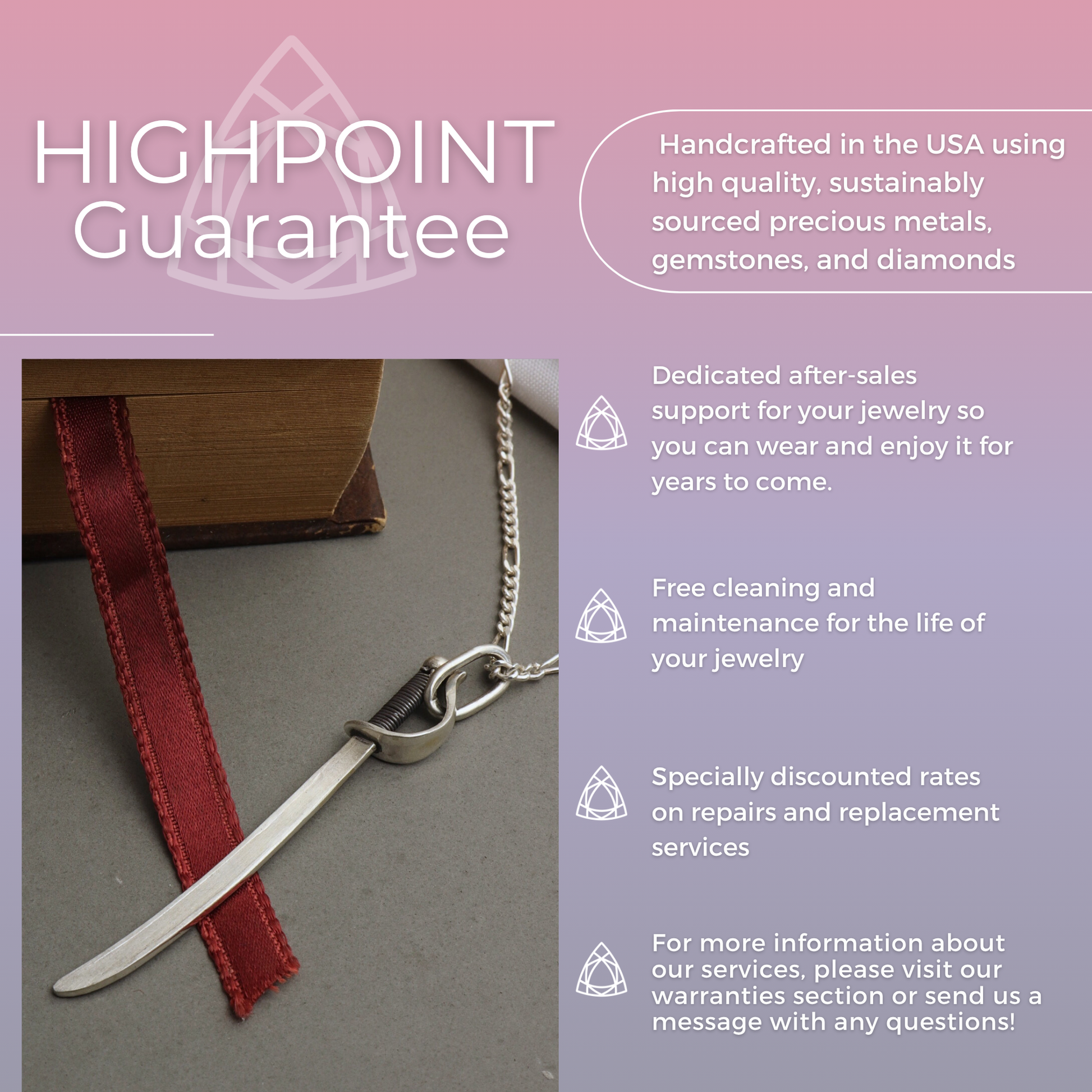 A favorite of rogues, sailors, and swashbucklers, this minimalistic sword pendant is decorated with a polished silver basket hilt which guards a handle is bound in blackened wire and a long, shimmering blade of hand forged silver that gently curves as it tapers to a keen tip.