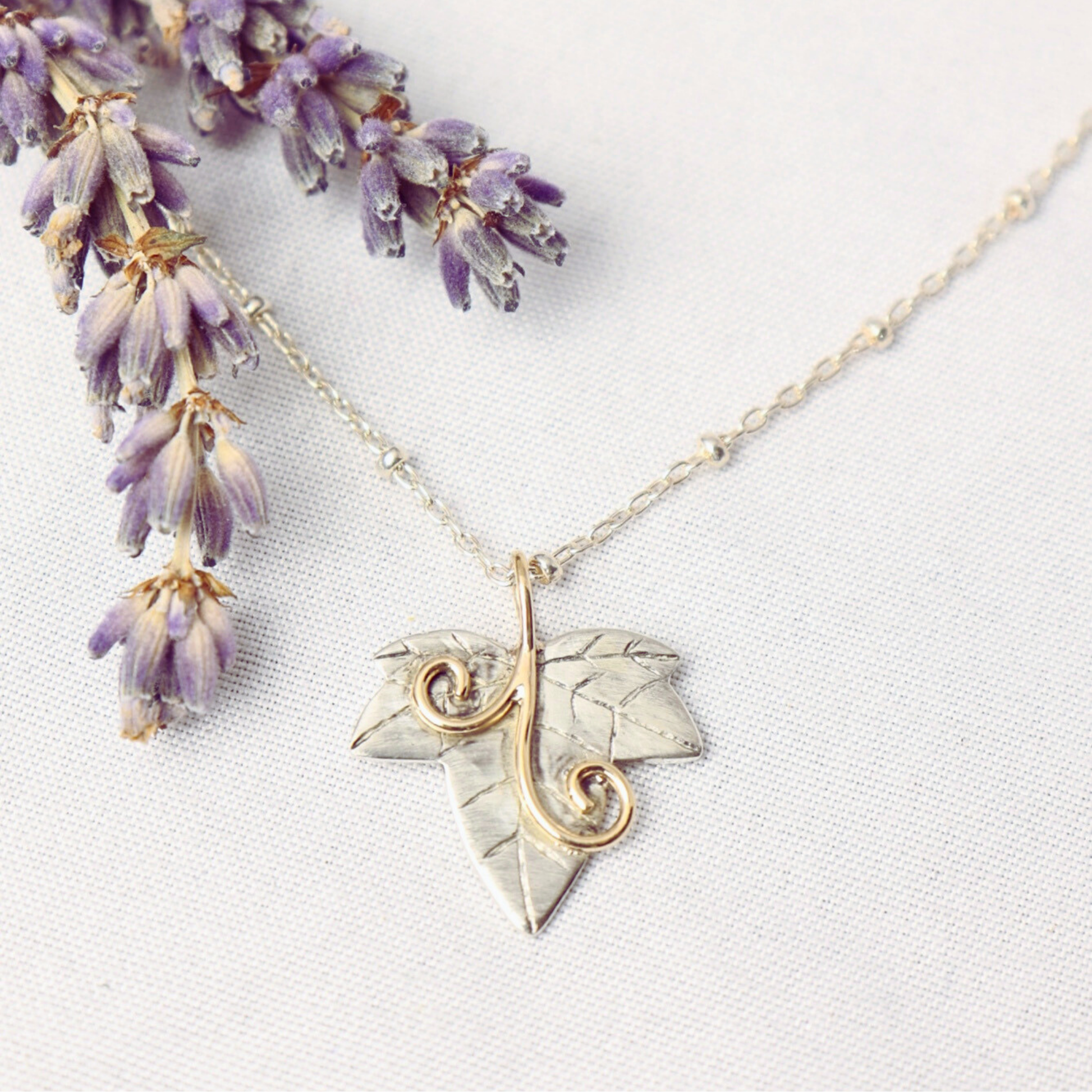 Two Tone Petite Ivy Leaf Pendant